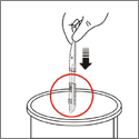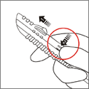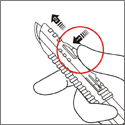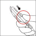 Grip cap between thumb and index finger behind release button and retract sheath fully till it clicks.